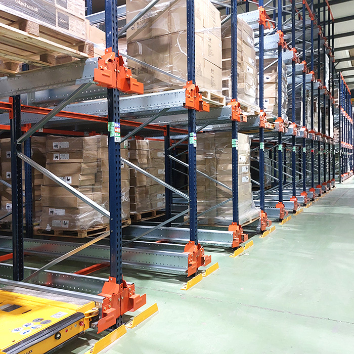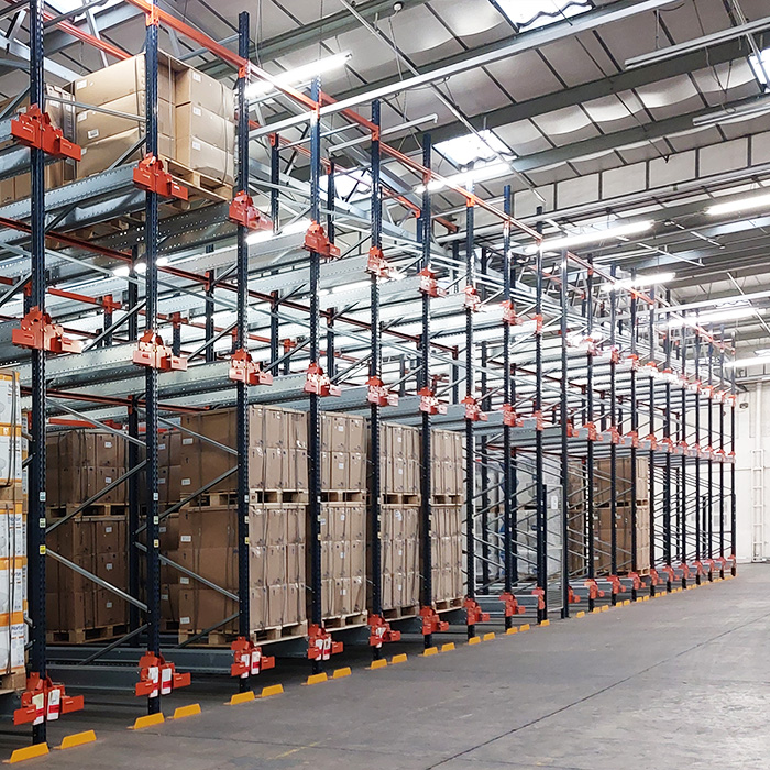 A 4-way pallet shuttle system is a high-density storage solution that uses automated shuttles to transport pallets within a racking structure. These shuttles can move horizontally within the lanes and vertically using lifts, allowing for flexible, efficient, and scalable storage and retrieval operations.